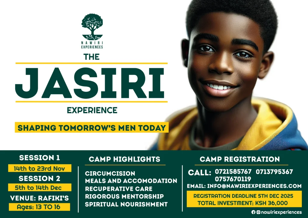 🔰 At the heart of the Jasiri Experience is our immersive ten-day camp. Carefully crafted to challenge, inspire, and empower, the camp helps boys discover their strengths, values, and the responsibilities that come with growing up. It’s a time of self-discovery and growth that sets the foundation for their journey into young adulthood.